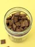 Fourrage* 34% (sucre de canne, noisettes 5%, huile de palme, poudre de cacao 3.3%, poudre de lait écrémé, huile de tournesol), blé*, maïs*, chocolat en poudre* 9.5% (sucre de canne non raffiné, poudre de cacao 3.1%), avoine*, son de blé*, poudre de cacao* 0.4%, sel.