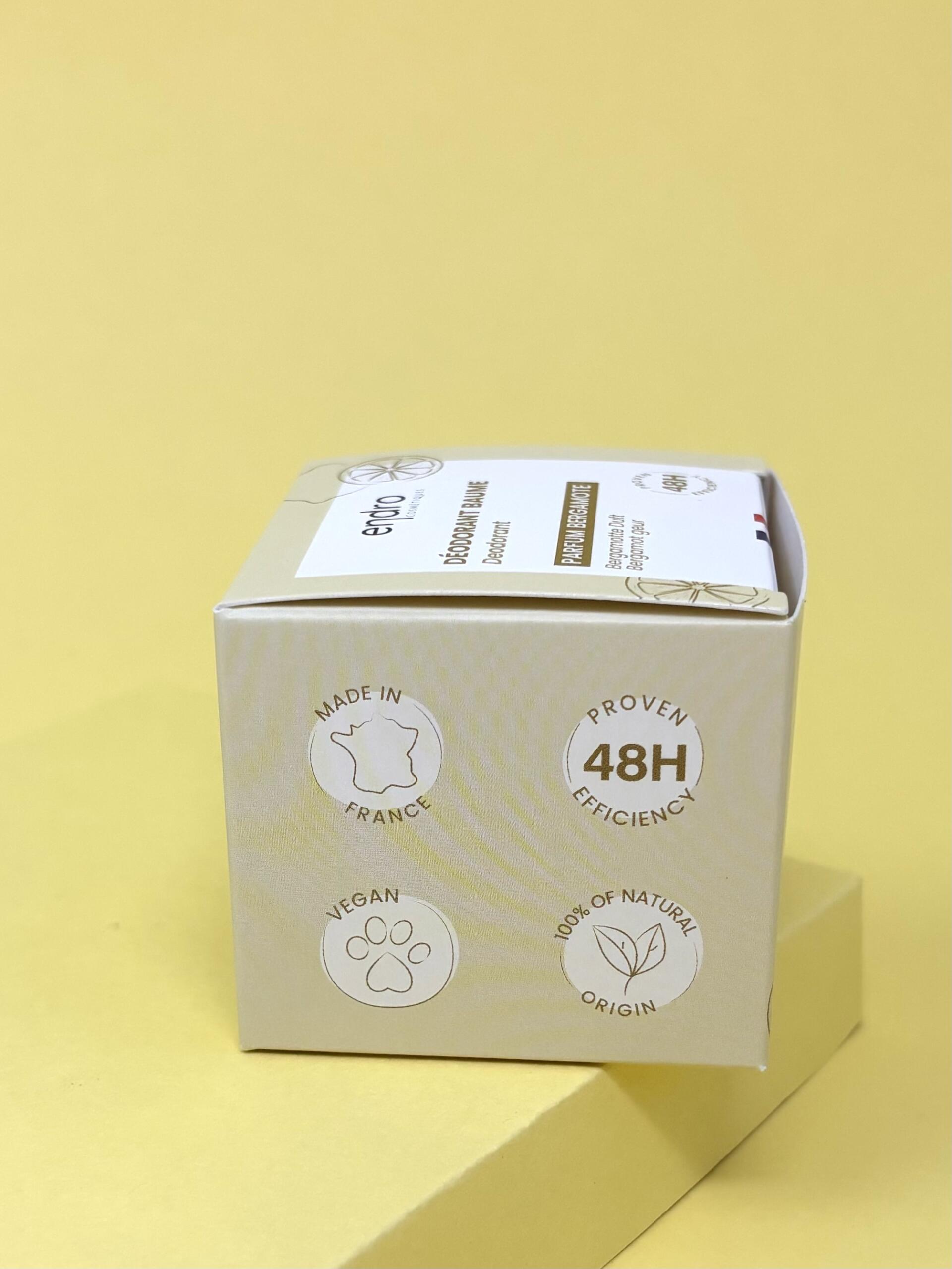 Déodorant zéro déchet à la bergamote, protection naturelle longue durée.