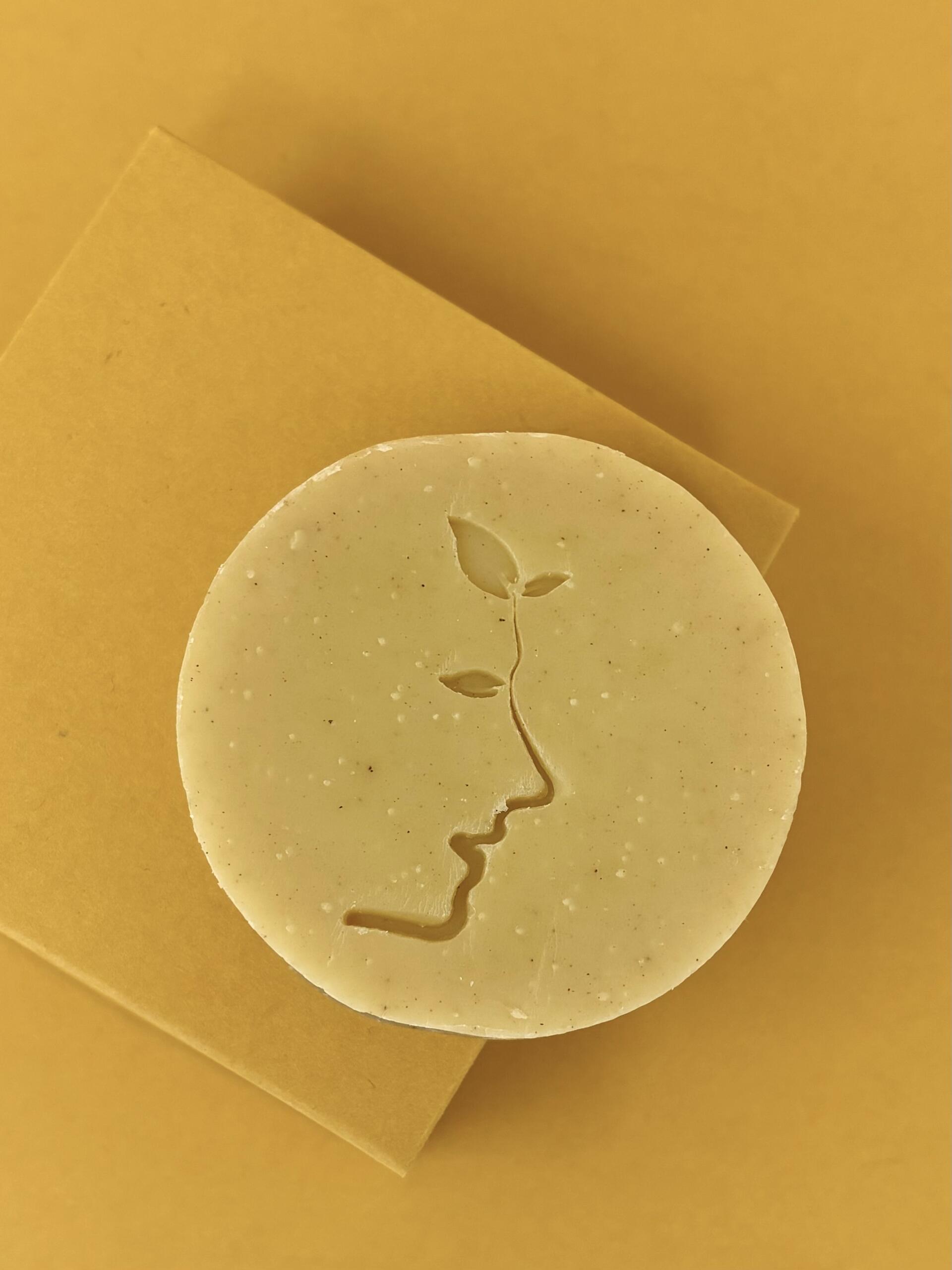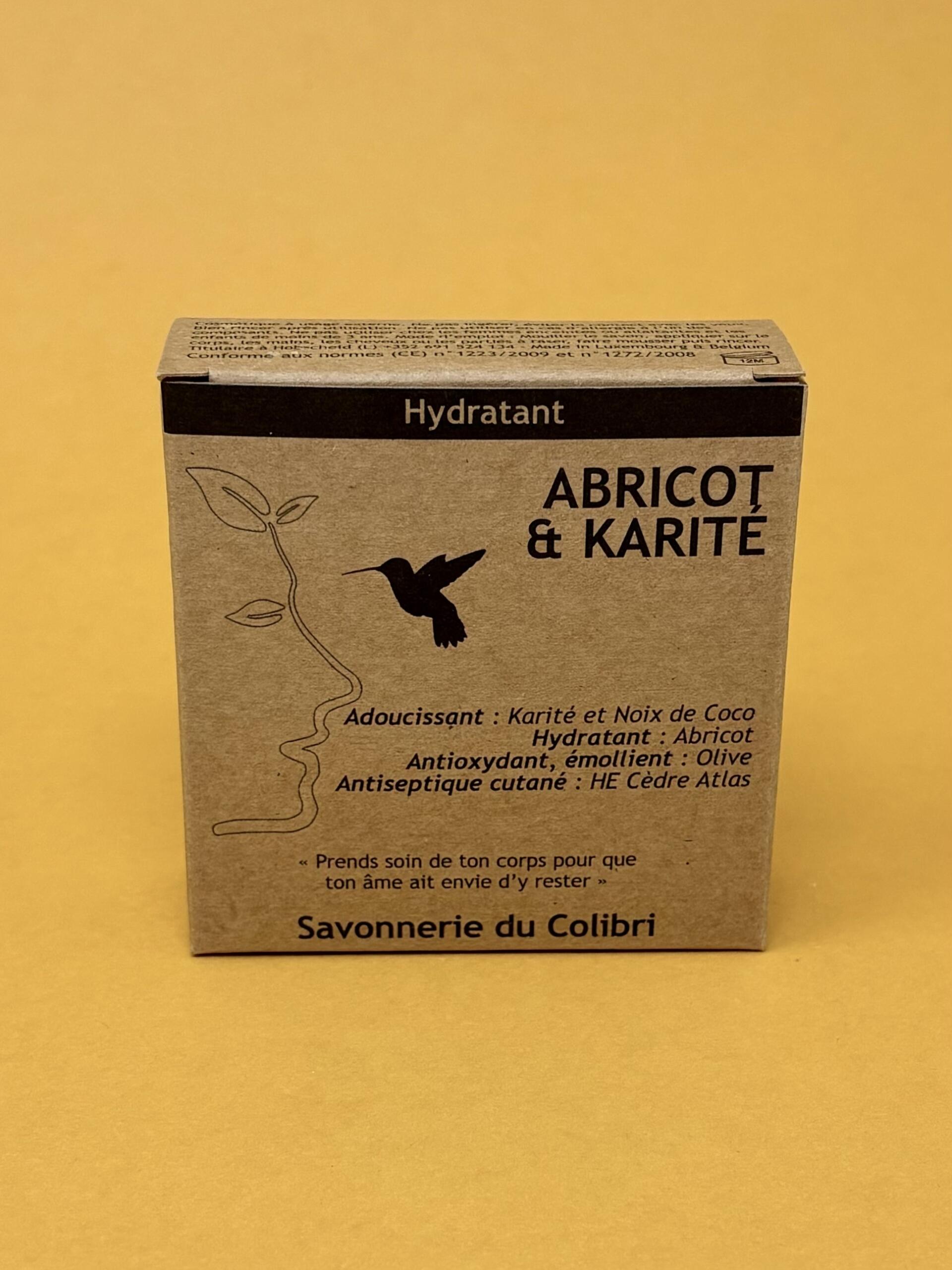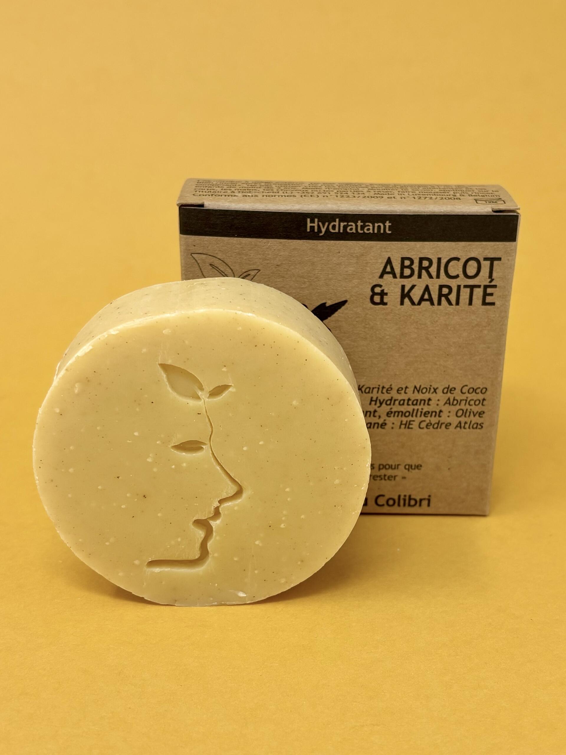 Savon artisanal luxembourgeois, 100 % naturel, alliant huile d'abricot et beurre de karité, pour nourrir, réparer et apaiser peau et cheveux.