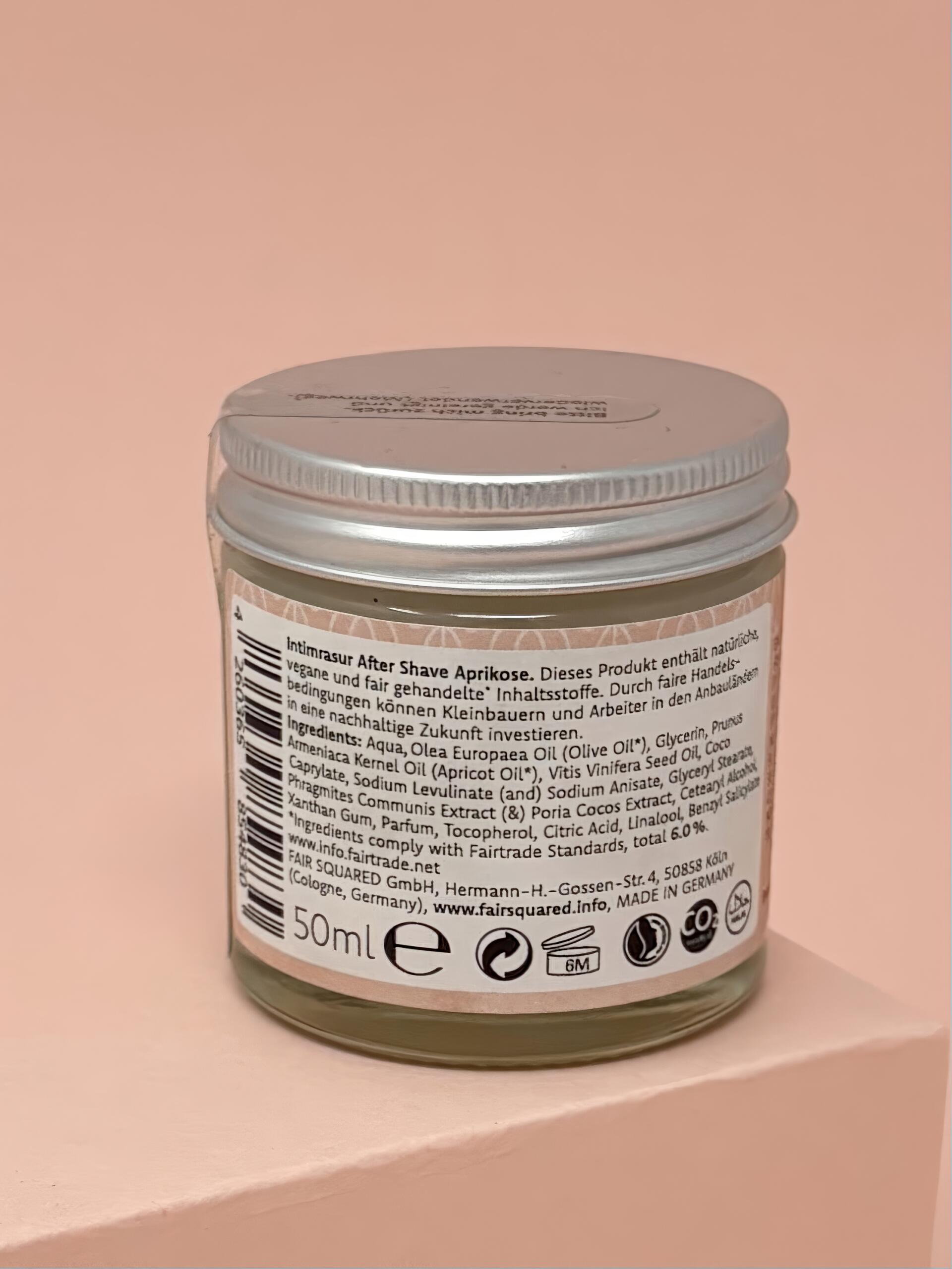 Baume après‑rasage naturel à l’abricot, doux et hydratant, qui apaise la peau et prévient les irritations après le rasage.