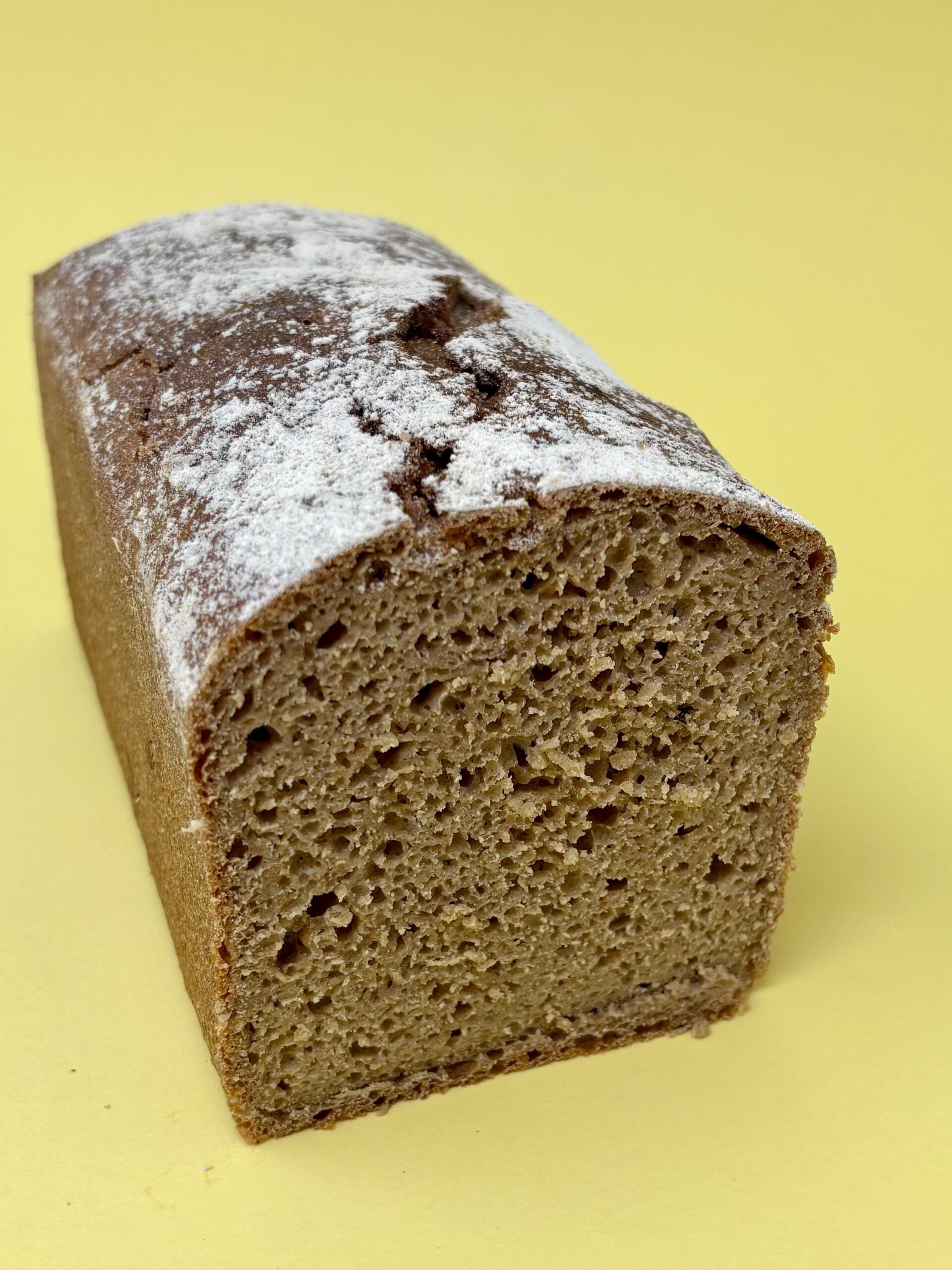 Ce pain est fabriqué exclusivement avec de la farine intégrale de petit épeautre (engrain) et son levain naturel. Sa saveur douce et légèrement noisettée en fait un choix digeste et authentique.