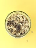 Flocons d’orge*, d’avoine*, de froment*, noisettes*, graines de tournesol*, raisins sultanines*.