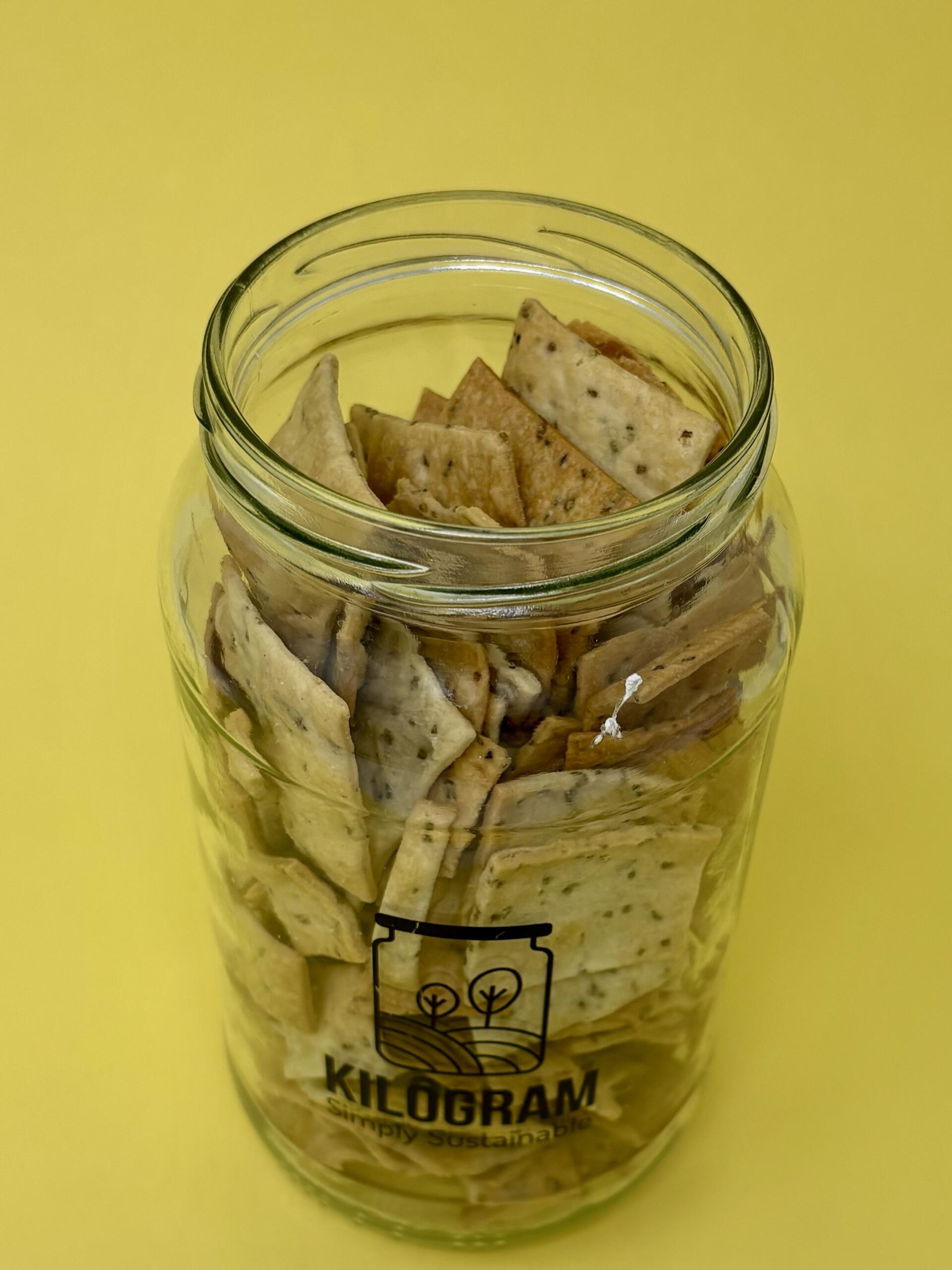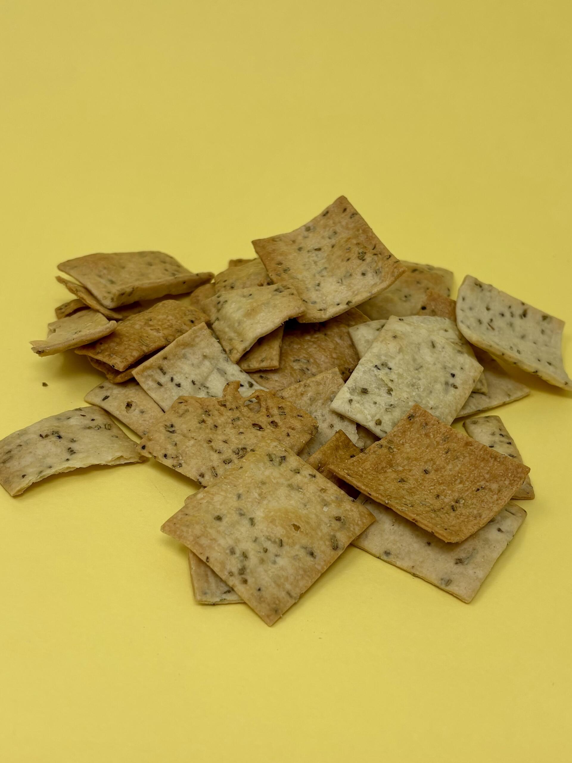 Cracker au romarin, croustillant, riche en fibres, parfait pour accompagner fromage, vin rouge, houmous ou tapenade.
