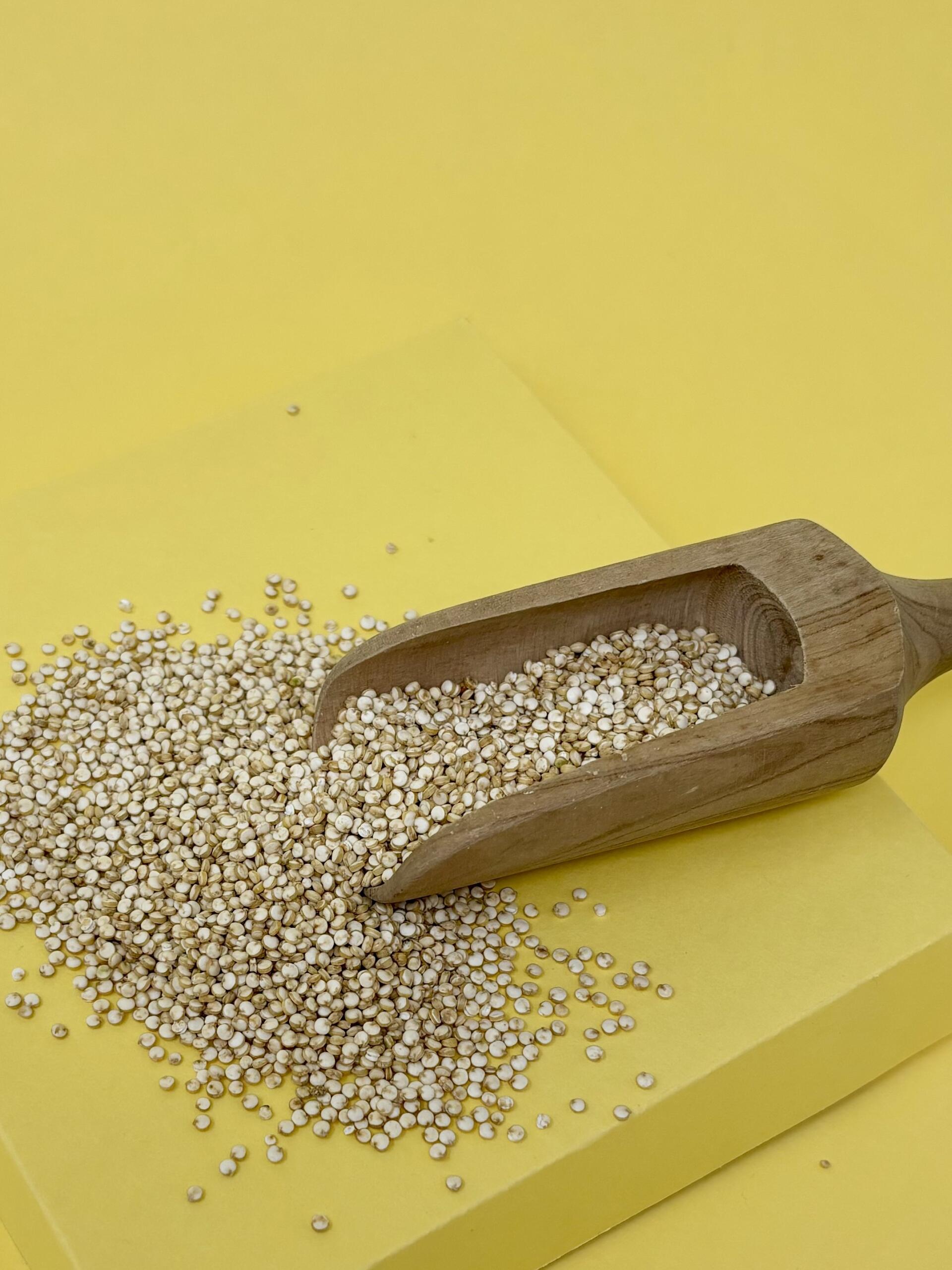 Le quinoa blanc est une graine légère et nutritive, riche en protéines complètes, en fibres et en minéraux essentiels. Facile à préparer, il se cuisine rapidement et accompagne à merveille salades, légumes, viandes ou plats végétariens. Sans gluten, il est une alternative idéale pour une alimentation équilibrée et sans compromis sur le goût.