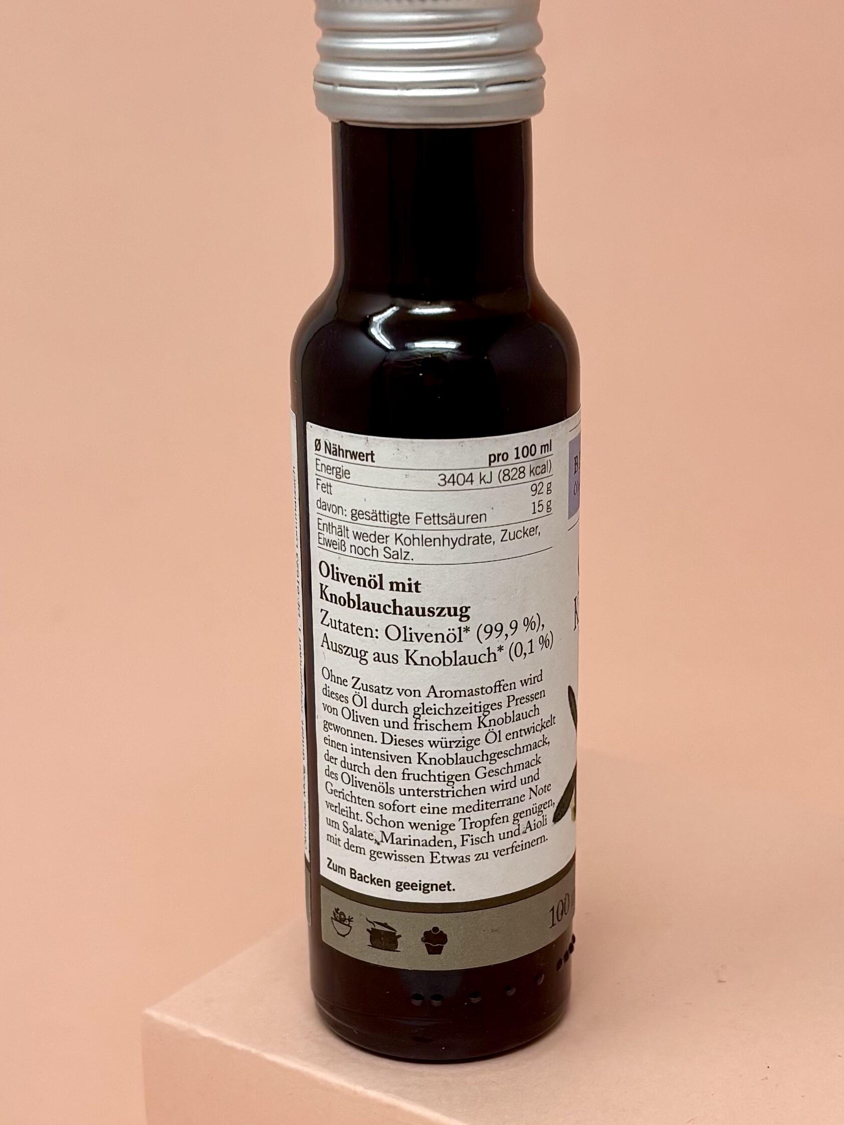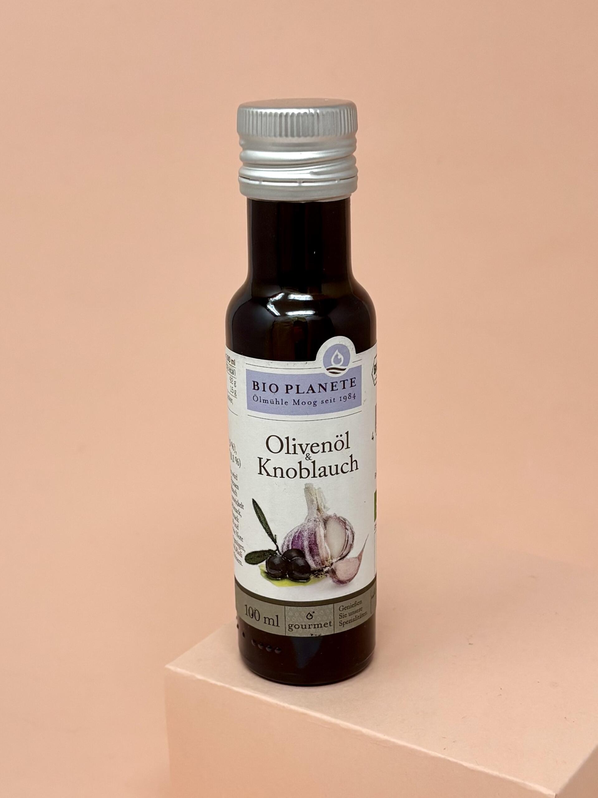 Huile d’olive infusée à l’ail frais, savoureuse et parfumée.