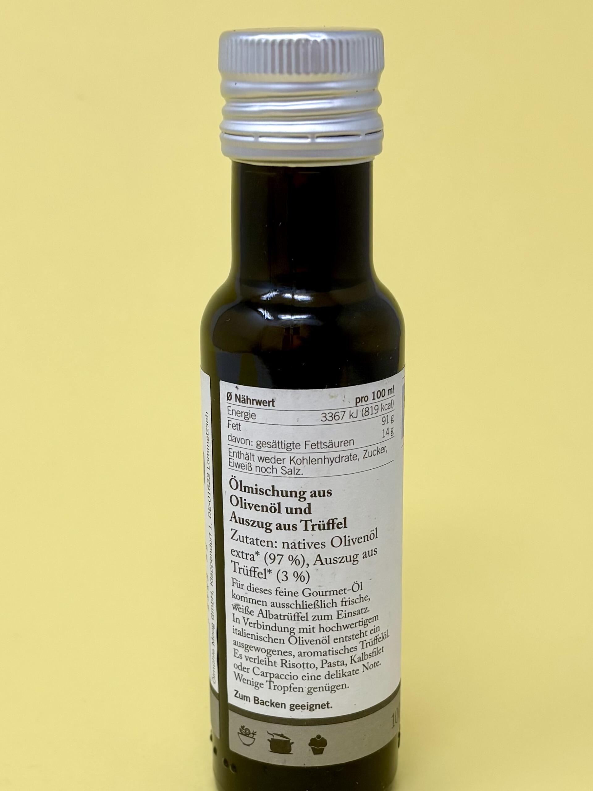 Cette huile associe 97 % d’huile d’olive extra vierge bio à 3 % d’extraits de truffe blanche d’Alba pour un parfum profond et boisé. Quelques gouttes suffisent pour sublimer une purée, des champignons ou un risotto.