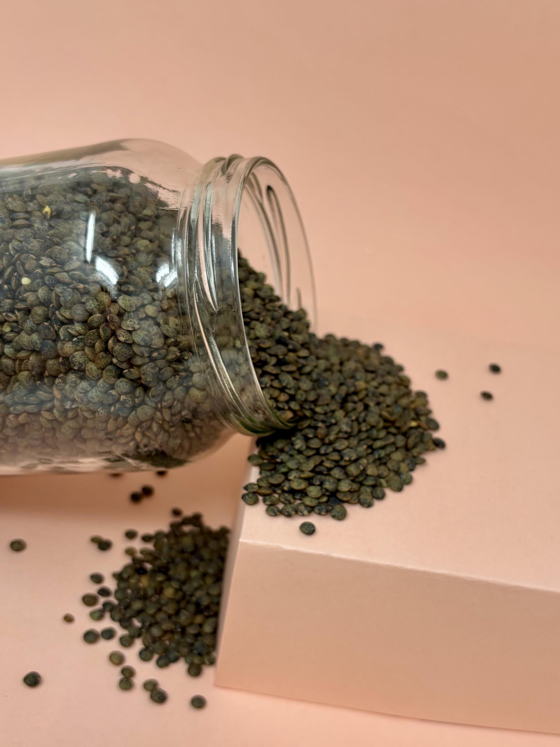 Lentilles vertes bio, riches en protéines, fibres et minéraux, parfaites pour une alimentation saine et équilibrée.