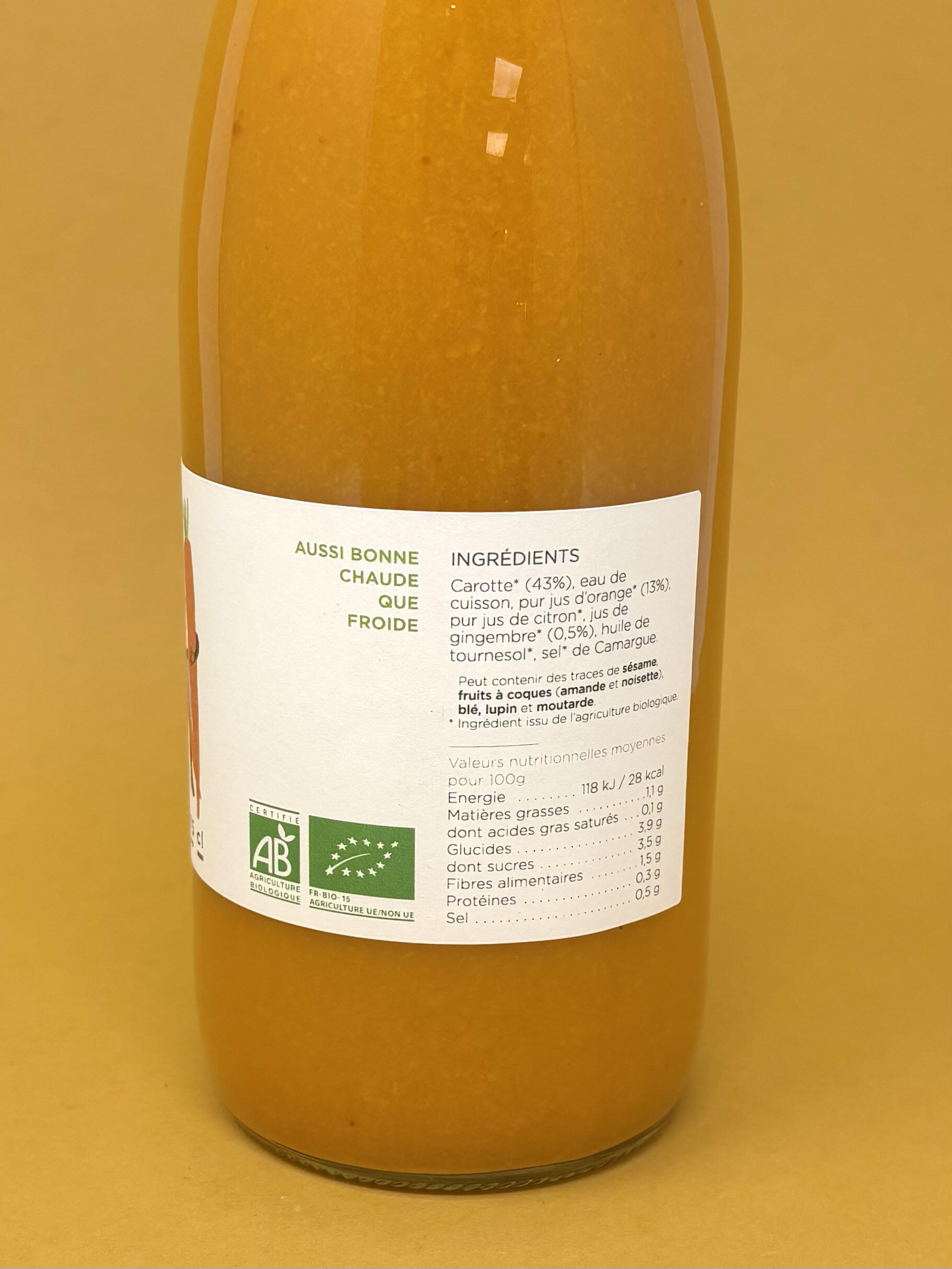Cette soupe associe la douceur de la carotte, la fraîcheur de l’orange et la note légèrement piquante du gingembre. Elle offre un goût équilibré et agréable. Elle est parfaite pour un repas sain et plein de saveurs.