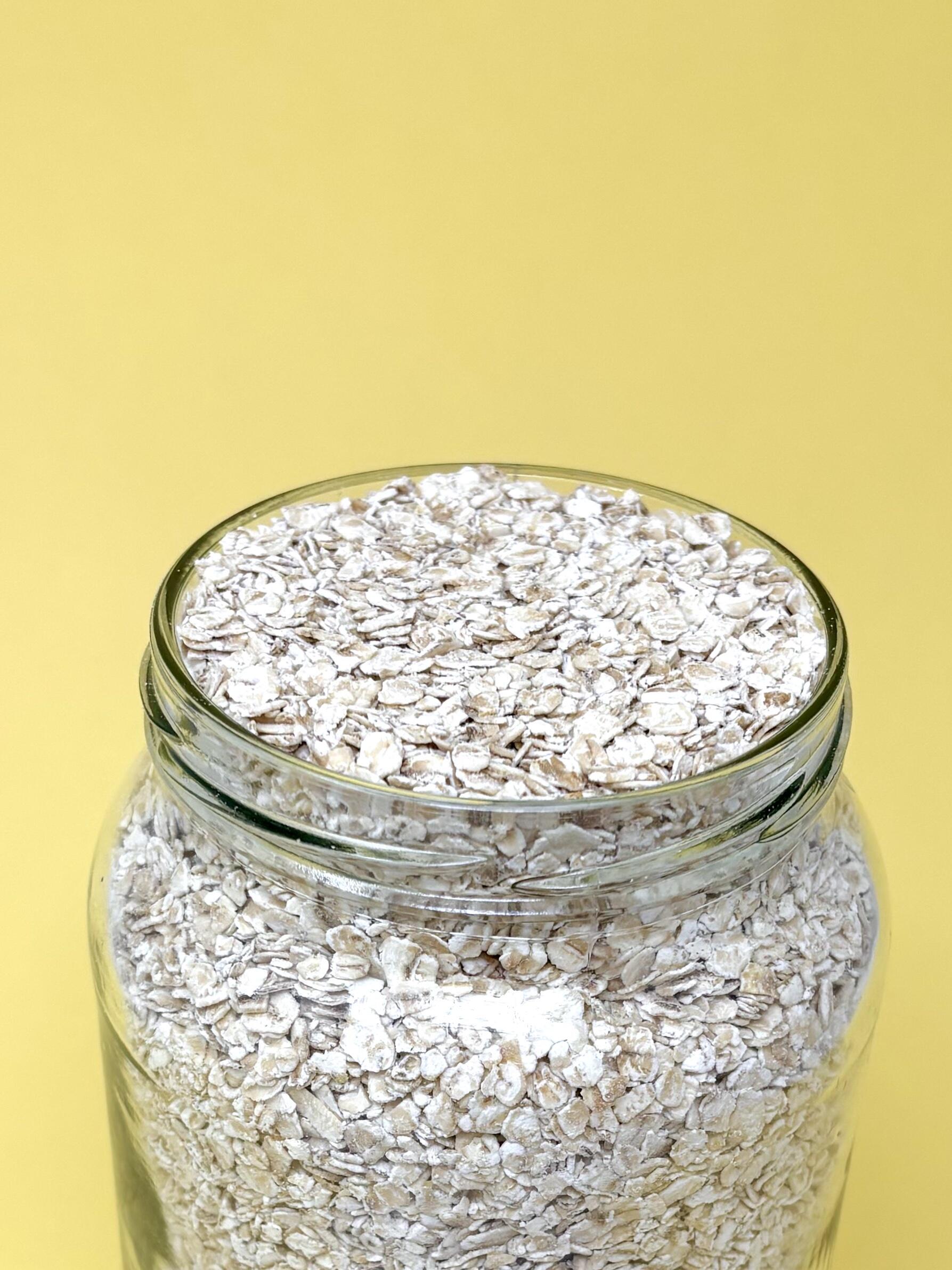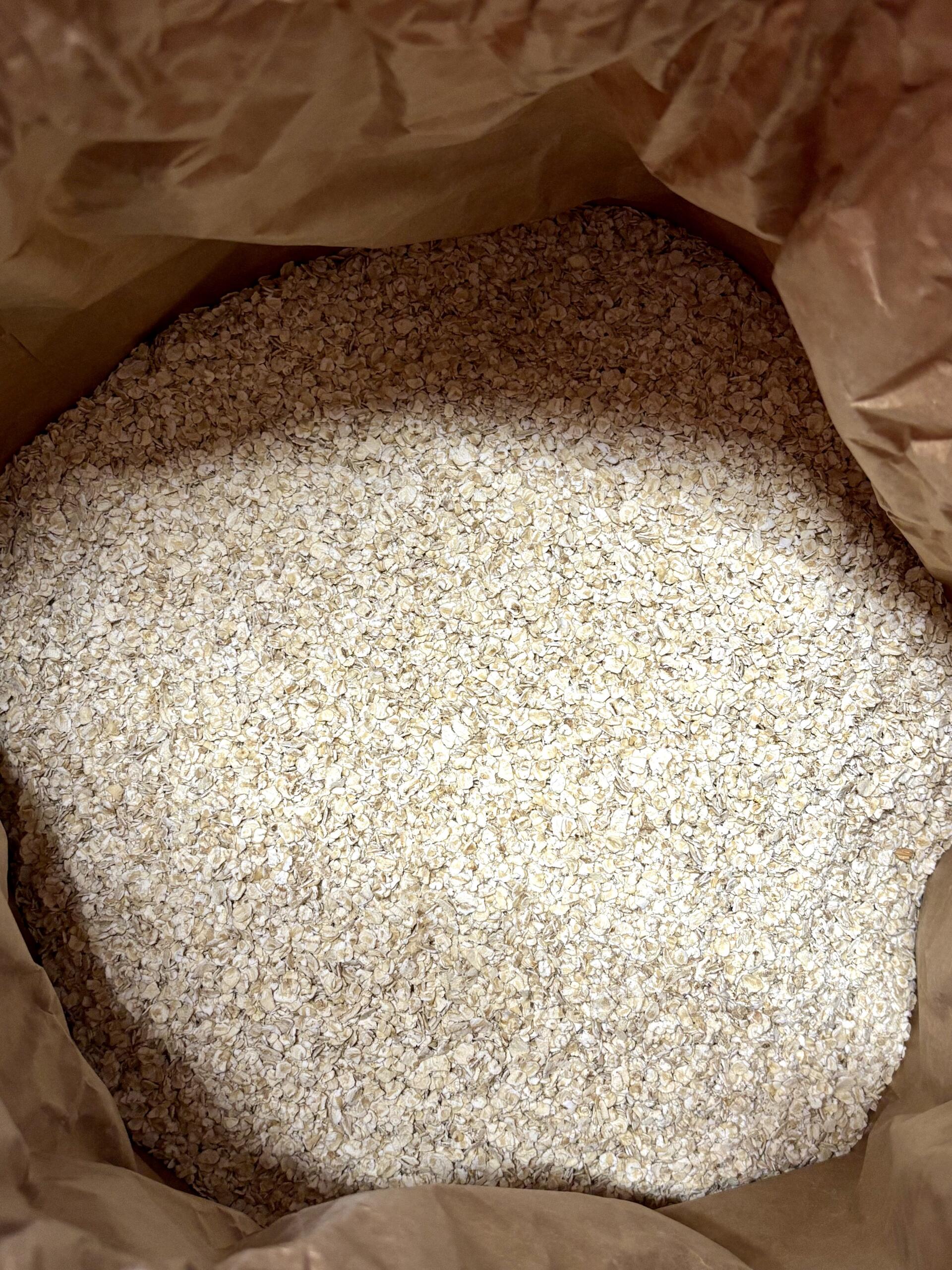 Flocons d'avoine vrac riches en fibres et fer, polyvalents pour muesli, porridge et pâtisseries.