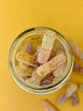 Bonbons frites végétaliens sans gluten aux arômes et colorants naturels de fruits.