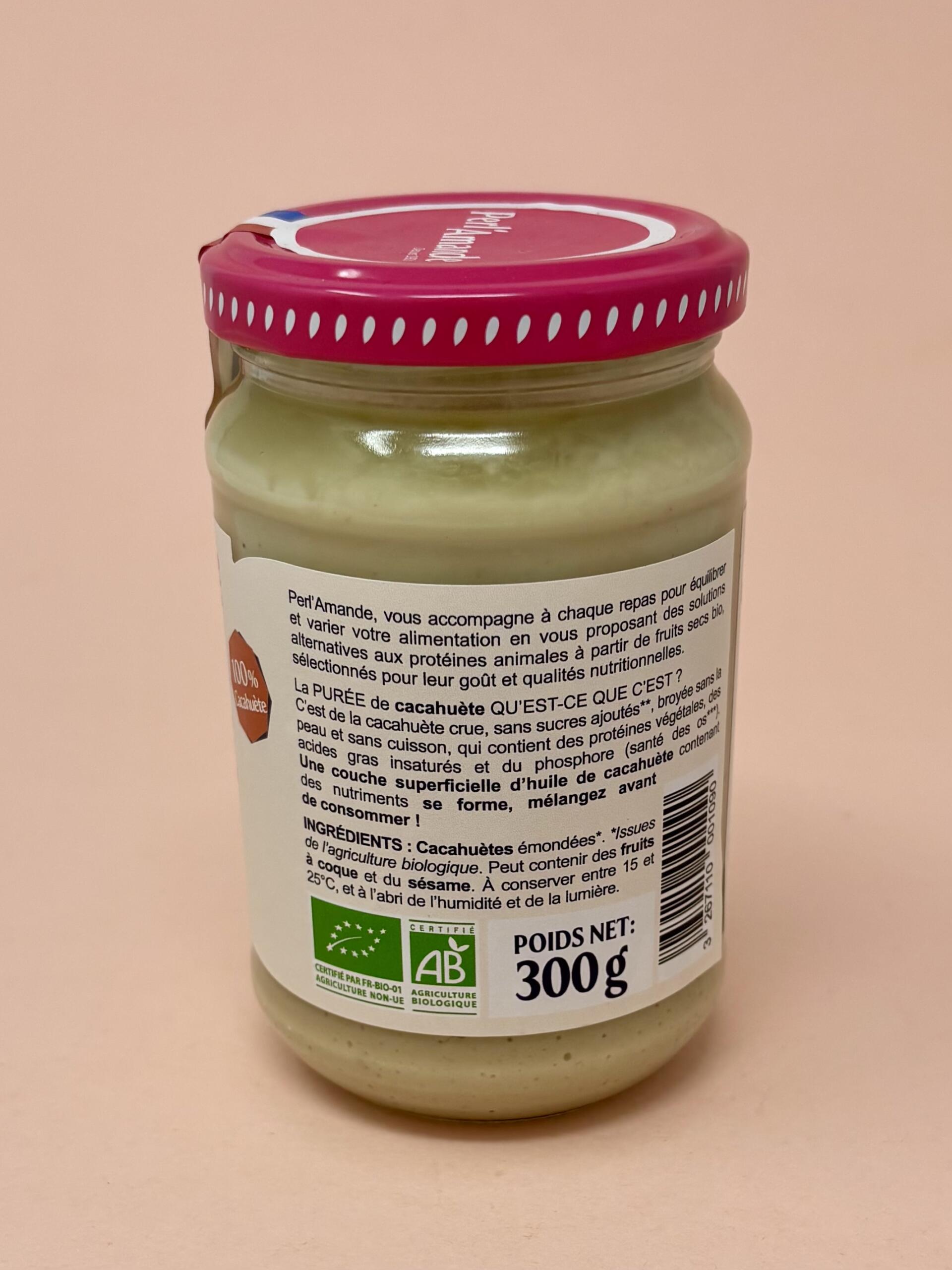 Fabriquée sans torréfaction, cette purée conserve la saveur douce et végétale de la cacahuète à l’état brut. Elle s’intègre facilement aux smoothies, sauces ou en toast pour un encas nutritif.
