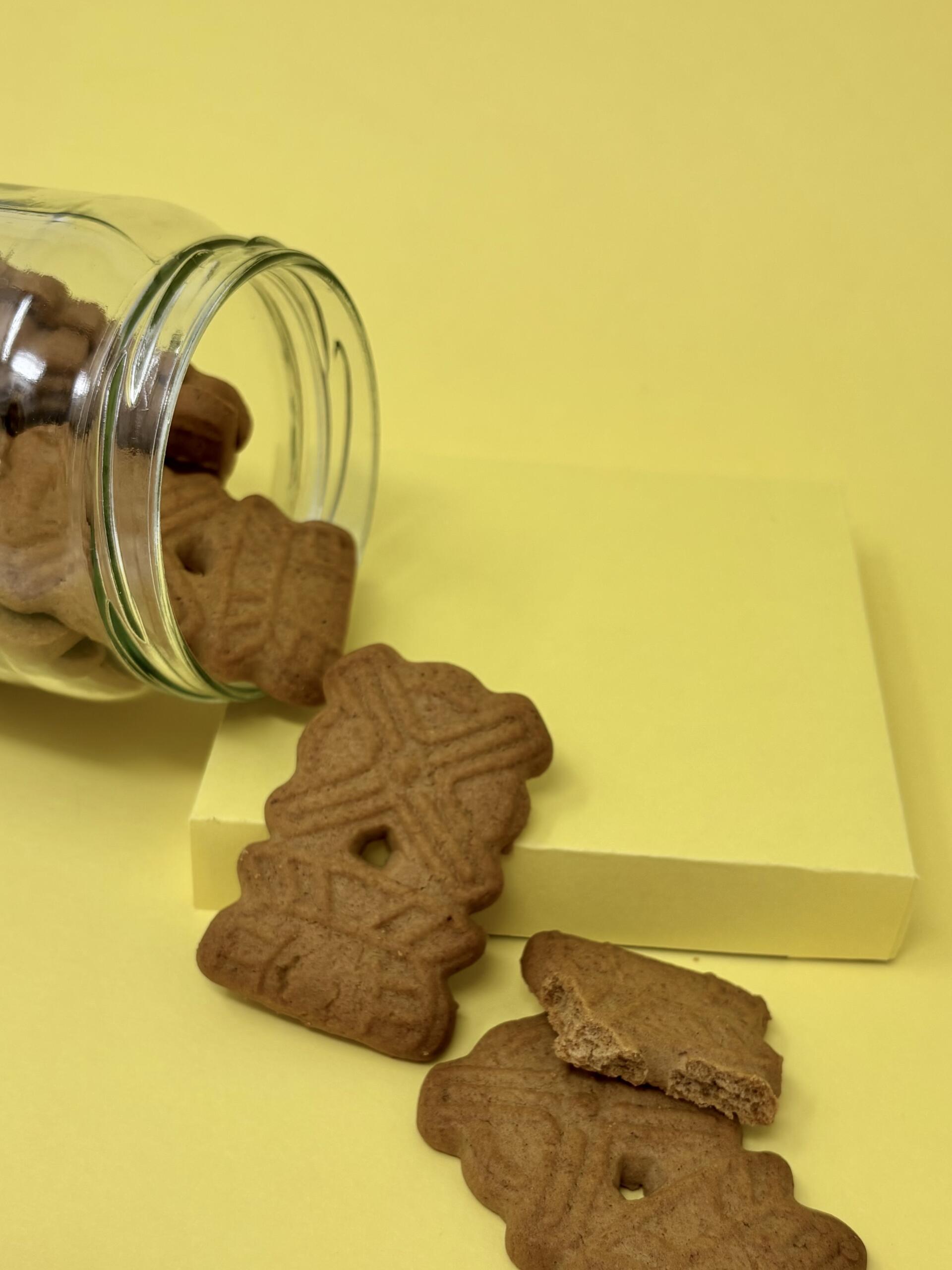 Biscuits croquants à la farine de blé et complète, sucrés au sirop d'agave et parfumés à la cannelle, idéals pour les gourmands végétalien.