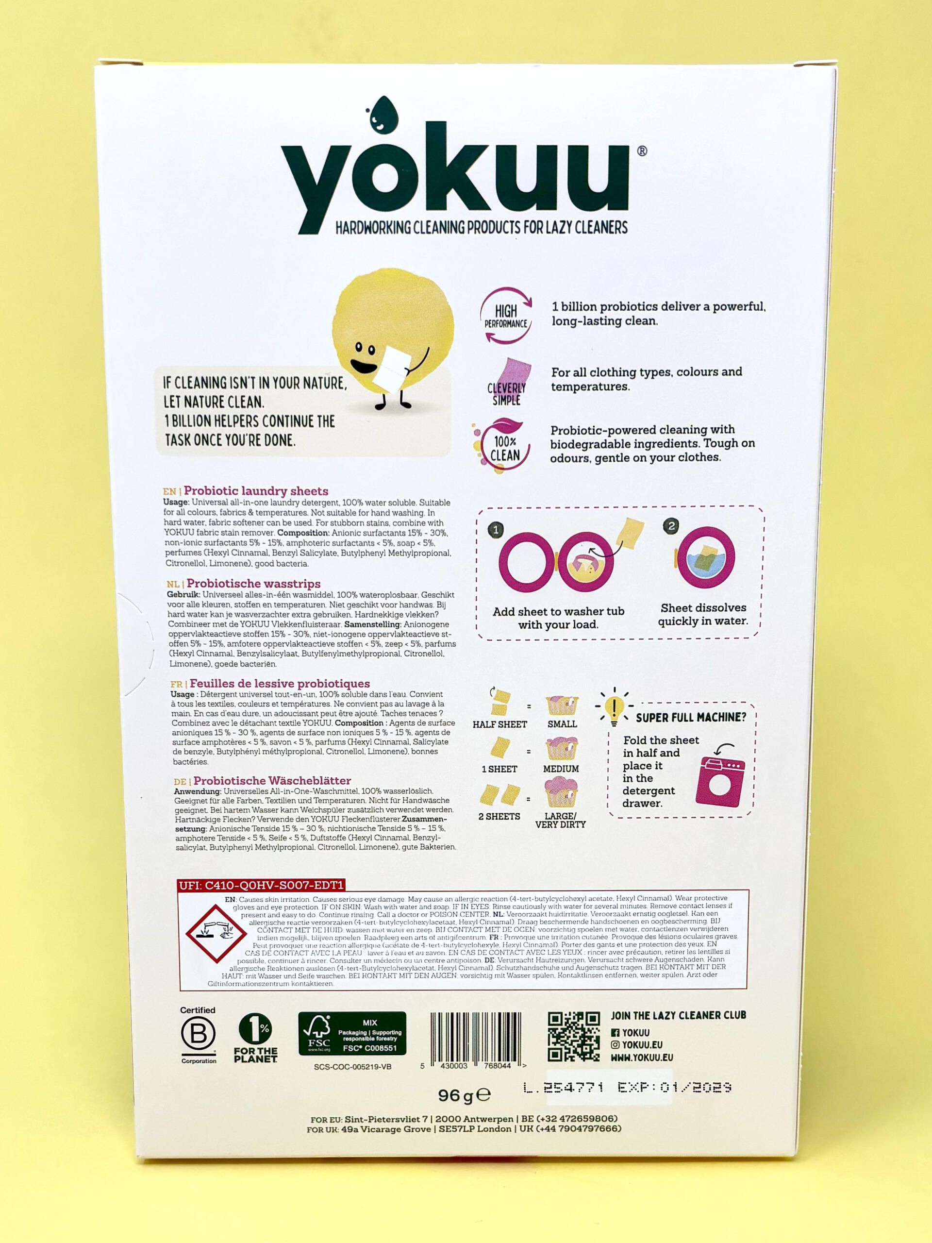 Ces feuilles de lessive innovantes offrent une solution simple et écologique pour nettoyer votre linge au quotidien. Grâce à leur formule enrichie en bonnes bactéries, elles pénètrent en profondeur dans les fibres pour éliminer efficacement les odeurs et les saletés. Leur format compact sans plastique permet de réduire les déchets tout en facilitant le transport et l’utilisation.