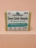 Savon de Marseille solide, 100% naturel et recyclable, remplaçant 4 bouteilles de liquide vaisselle, avec huile d'olive, de coprah et bicarbonate pour une vaisselle propre et écologique.